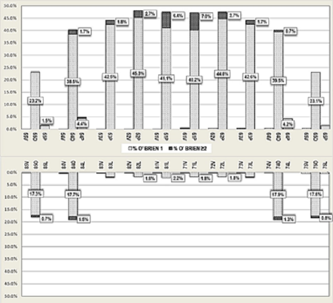 Ambos índices, O´Brien y B.E.W.E, coinciden en la estimación de la prevalencia y severidad, mientras que, en la extensión, existe una leve diferencia, por lo que pueden ser comparados directamente.