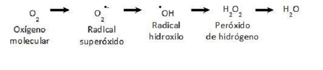 Bajo el término de especies reactivas de oxígeno (ERO), se incluyen los radicales de oxígeno así como también algunos derivados no radicalares 16. En el Esquema 1, se muestra la secuencia de reducción por un electrón del oxígeno molecular (O2):