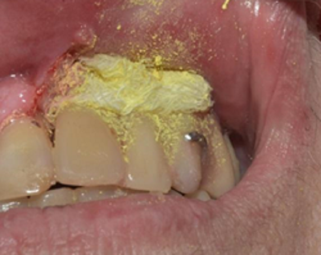Durante el procedimiento de la biopsia incisional, se decide realizar cambio de táctica a exéresis de toda la lesión clínicamente visible, con el objetivo de controlar la hemorragia intraoperatoria y conseguir una correcta hemostasis. Se realizan además las exodoncias de las piezas 2.1 y 2.3 con el mismo fin. (Figs. 6 y 7)