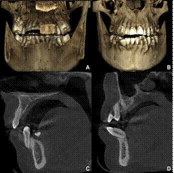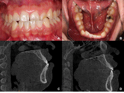 En ocasiones, la versión canina, es inapreciable y es el incisivo el que muestra una versión radiculovestibular o coronovestibular muy marcada (8. En algunos casos, también los incisivos están desalineados y sus ejes inclinados junto con el canino comprometido, como se puede ver en la figura 2 y 3. En otros casos, donde la contención fue colocada solamente en los incisivos inferiores, son estos los que sufren los movimientos como se puede ver en la figura 4.