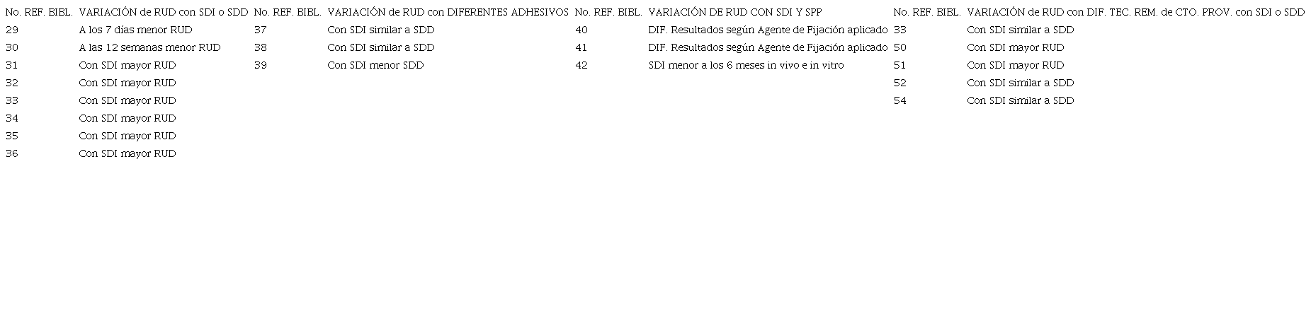 -Utilizando cuatro sistemas adhesivos, después de 3 meses de almacenamiento en agua, la RUD no difirió entre los grupos con SDI y el grupo control sin SDI 38.