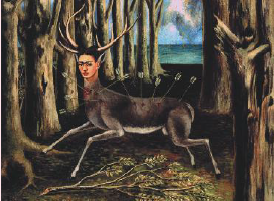 En El venado herido (1946), Frida se pinta como un venadito alcanzado por múltiples flechas en medio de un bosque: acorralada sin posibilidades de cambiar su vida. Se dice que este cuadro expresa la desilusión que la embargó luego de una intervención fracasada en Estados Unidos sobre la que había depositado grandes esperanzas.