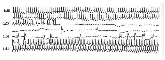 En la gran mayoría de los casos la muerte súbita se debe a un episodio de FA con alta respuesta ventricular (figura 1) que degenera en fibrilación ventricular. Por lo tanto, el pronóstico de estos pacientes se relaciona con la cantidad de impulsos que la vía es capaz de conducir por unidad de tiempo.