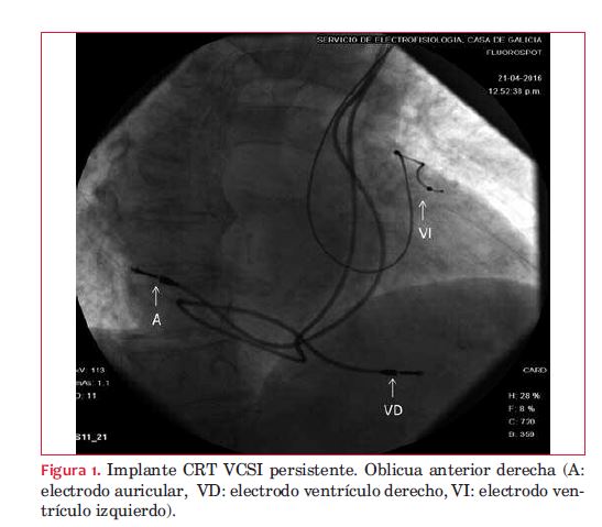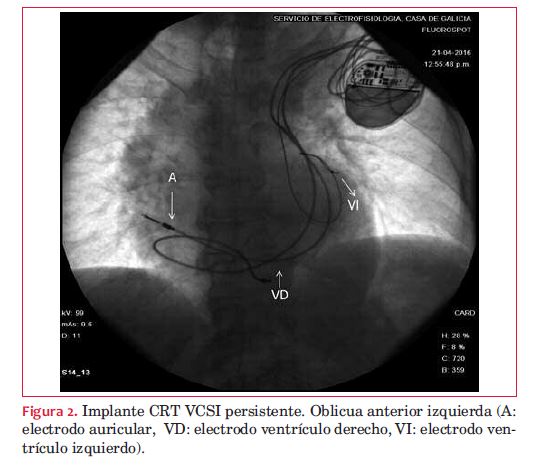 Presentamos el caso de una paciente de sexo femenino de 71 años portadora de miocardiopatía dilatada no isquémica, con indicación de terapia de resincronización ventricular: fracción de eyección severamente disminuida y bloqueo de rama izquierda con QRS > 130 ms. Se encontró persistencia de vena cava superior izquierda (VCSI), logrando implantarse los electrodos en lugares apropiados con excelentes umbrales.
