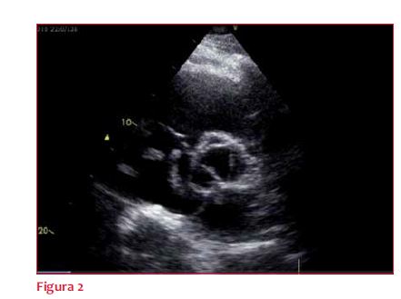Basados en elementos electrocardiográficos de isquemia transmural difusa y el hallazgo ecocardiográfico de un trastorno difuso de la contractilidad, de predominio medio-apical, sin respetar un claro territorio vascular, sumado al antecedente de ausencia de lesiones coronarias en la CACG reciente, se plantea el diagnóstico de miocardiopatía de takotsubo. En la evolución presenta tendencia a la hipotensión, por lo que se realizatratamiento fisiopatológico de ladisfunción contráctil de etiología isquémica, con fármacos inotrópicos y vasodilatadores coronarios,