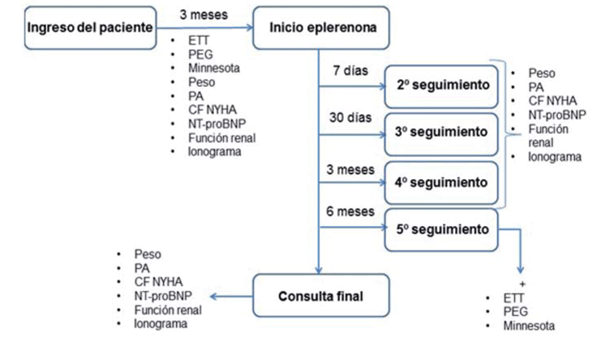 El estudio respetó los criterios establecidos en la Declaración de Helsinki y fue aprobado por el Comité de Ética del Hospital de Clínicas. Se informó a los pacientes sobre los potenciales beneficios y riesgos del uso crónico de eplerenona. Se obtuvo consentimiento informado de forma oral y escrita en cada paciente que integró el ensayo.