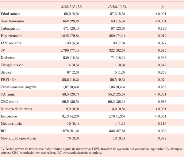 Características de los pacientes que recibieron SAMI o DAMI (n=2.691).