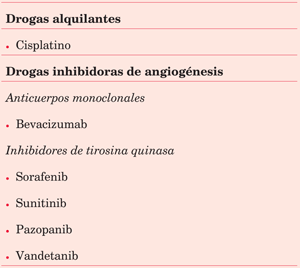 Varios agentes utilizados en quimioterapia tienen potencial pro hipertensivo. Desde hace más de 20 años las drogas alquilantes, principalmente el cisplatino, que tiene potencial nefrotóxico, y más raramente la ciclofosfamida, han sido relacionadas a una mayor prevalencia de HTA durante y después del tratamiento oncológico. Sin embargo, pese a que son extensamente utilizadas en varios tipos de cáncer, existen escasos reportes sobre la verdadera incidencia e importancia de la hipertensión asociada a su uso(4,11,12).