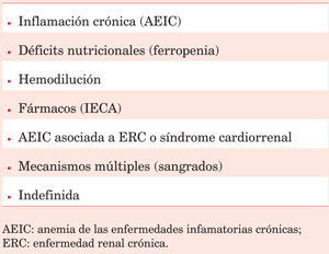 La anemia es frecuente en los pacientes con IC determinando mala tolerancia al ejercicio, mayor sintomatología y peor pronóstico, pudiendo actuar como causa de descompensación y hospitalización(25). Su incidencia es variable (15%-61%) teniendo una relación directa con la clase funcional(26).