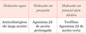 Mientras los anticolinérgicos de acción corta, como el bromuro de ipratropio, se asociaron a una mayor frecuencia de eventos cardiovasculares, los de acción prolongada, como el tiotropio, han mostrado, respecto al placebo, una reducción de la mortalidad cardiovascular en pacientes con EPOC y son seguros en pacientes con IC(36).