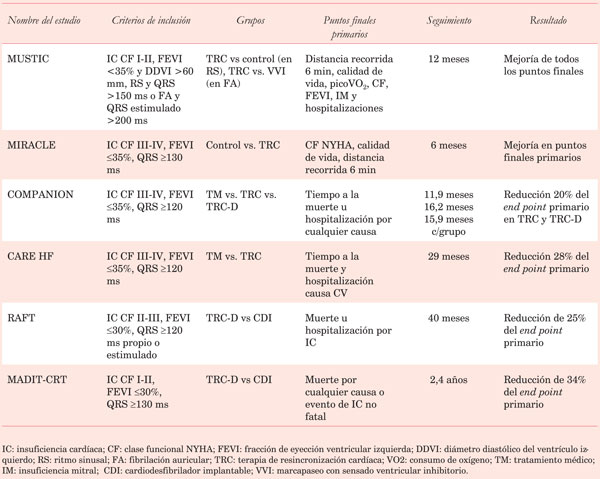 Estudios randomizados más importantes de la terapia de resincronización cardíaca