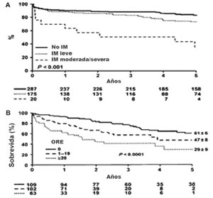 La figura 3 grafica los resultados del trabajo de Grignoli mostrando la implicancia de la presencia de la IM y su severidad(45).