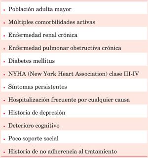 La IC es una enfermedad con alta complejidad dada, entre otras, por la dificultad que supone realizar su diagnóstico, su gran prevalencia entre los adultos mayores, con alta frecuencia de comorbilidades tales como depresión, enfermedad renal crónica o anemia que interfieren en la adherencia al tratamiento y son predictores independientes de mortalidad(6-9).