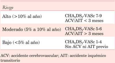 Estratificación del riesgo tromboembólico de los pacientes en tratamiento anticoagulante por fibrilación auricular. Modificada de (7).