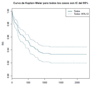 Los datos de supervivencia fueron estimados y graficados mediante las curvas de Kaplan-Meier.