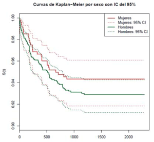 Curva de Kaplan-Meier: sobrevida diferenciada por sexos.
