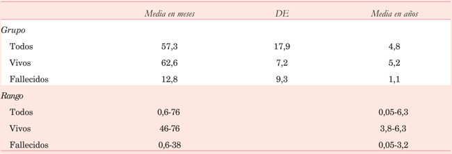 El tiempo promedio de seguimiento fue de 57,3 ± 17,9 meses (0,6-76,0 meses) (tabla 4).
