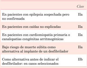 - Uso de registradores de eventos implantables en pacientes seleccionados sin o con pocos pródromos.