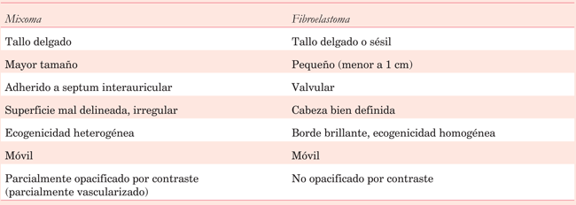 Características ecocardiográficas diferenciales entre mixoma y fibroelastoma papilar.