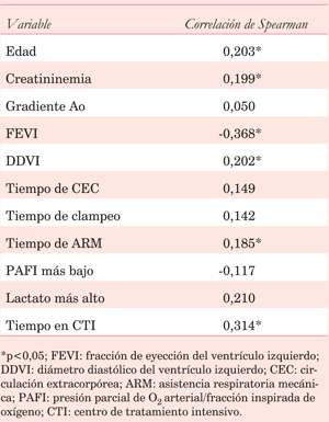 Valores elevados de NT-proBNP en el preoperatorio se asociaron a aumento significativo de las siguientes variables: tiempo de ARM y tiempo de estadía en CTI (tabla 2).