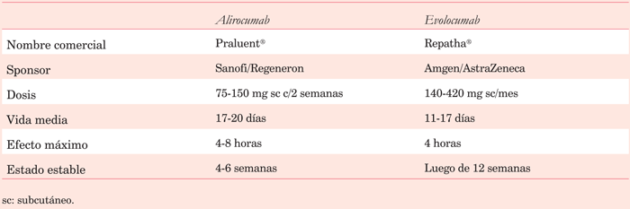 En la tabla 1 se resumen las principales diferencias farmacocinéticas entre alirocumab y evolocumab.