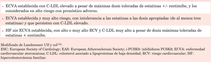 3. Pacientes con muy alto RCV e intolerancia a las estatinas.