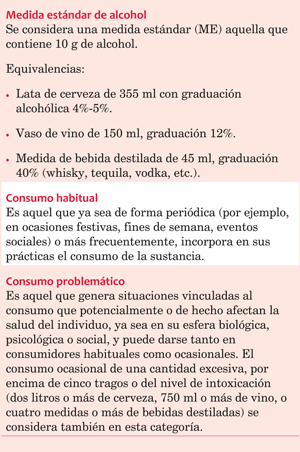 La actitud y el consejo médico frente al paciente consumidor de alcohol son también confusos. Una encuesta nacional recientemente publicada(3), realizada por Cuesta y colaboradores a 237 cardiólogos y 61 posgrados avanzados de cardiología, incluyó 25 preguntas acerca de su actitud frente al consumo de alcohol. Una tercera parte de los médicos consideró que el consumo moderado de alcohol es beneficioso para la salud cardiovascular, atribuido fundamentalmente al vino. Aproximadamente otro tercio consideró que cualquier consumo es perjudicial. Además, la mayoría se sentía confortable aconsejando a los pacientes sobre el tema, aunque no se sentían satisfechos con su conocimiento de las guías. Solo una minoría conocía el concepto de medida estándar de alcohol (standard drink). En la tabla 1 se resumen las definiciones más aceptadas.