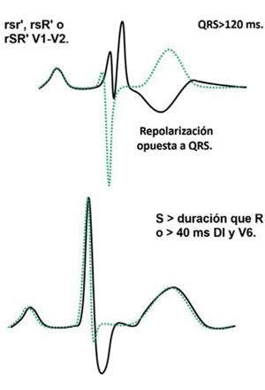 La observación de una sola EV con morfología de bloqueo de rama izquierda y eje superior en deportistas de especialidades de alto componente dinámico, sobre todo a edades mayores de 25 años, se debe investigar por su posible relación con enfermedad del ventrículo derecho(29).