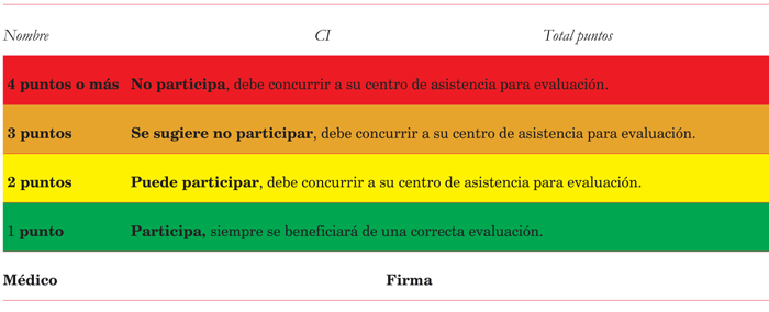 Quienes sumen 2 puntos podrán participar y se les debe sugerir la realización de una correcta EMPP al menor plazo posible.