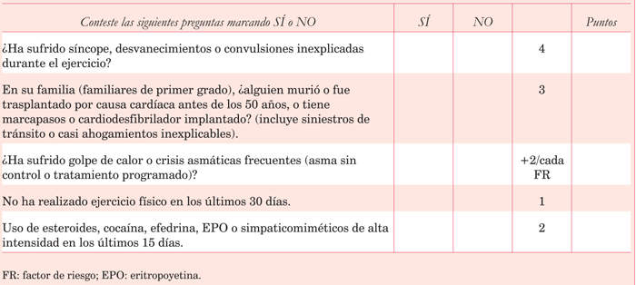 Aquellos individuos que sumen 3 puntos serán aconsejados a no participar en la competencia sin antes realizarse una correcta EMPP.