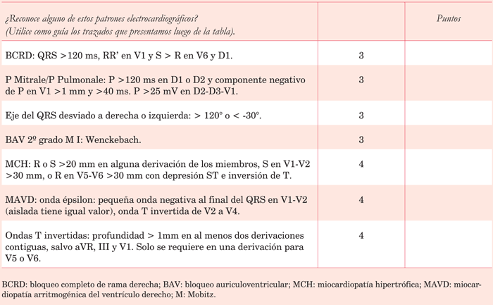 En un escalón por debajo de este grupo, colocamos aquellos fenómenos de riesgo elevado pero que requieren estar asociados a otro factor para determinar el retiro de la actividad. Estas situaciones aisladas determinan la necesidad de advertir al participante de los riesgos que corre al no haberse realizado una valoración previa. Son ejemplos, el dolor torácico (previo en 10% de episodios de MSD), antecedentes familiares de muerte súbita a edades tempranas (50% de familiares directos con MCH y MAVD presentan estas anomalías), hallazgos limítrofes en el ECG (requieren evaluación adicional si hay más de uno o síntomas asociados o antecedentes). En estos casos se adjudican 3 puntos.