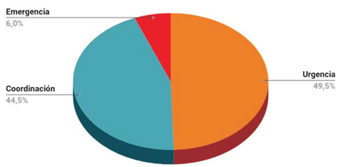 Entre enero de 2006 y diciembre de 2017 se intervinieron quirúrgicamente 101 pacientes con EI definida por criterios de Duke o criterios de Duke modificados, según la fecha de presentación. En la (tabla 1) de describen las características clínicas. El microorganismo más frecuentemente identificado fue Staphylococcus aureus (SA) (15,8%), seguido de enterococo (14,9%); la incidencia de los diferentes microorganimos se encuentra en la (figura 1). La mayoría de los hemocultivos (HC) fueron positivos (72,3%), pero el cultivo valvular fue positivo en una pequeña proporción de casos (16,8%) (figura 2). Se observó EP en 20,8% de los casos, de localización aórtica en 46,5%, mitral 23,8% y mitro-aórtica en 13,9%. La mayoría de las intervenciones se realizaron en condición de urgencia-emergencia (55,4% de los casos) (figura 3).