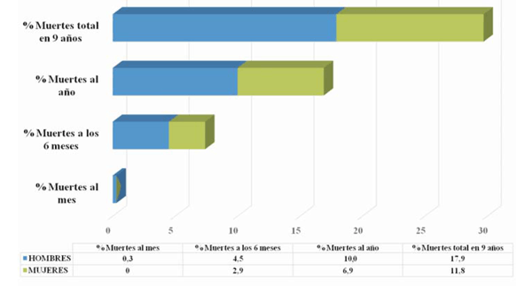 Figura 8: Mortalidad en distintos momentos del seguimiento.