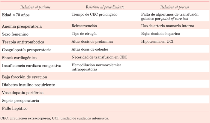 Se han identificado varios factores de riesgo de sangrado en el período preoperatorio (tabla 1).