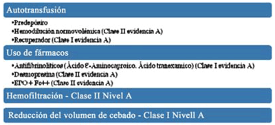 Tanto la identificación de estos factores como la implementación de medidas de conservación de sangre, la corrección de la anemia preoperatoria, el uso de fármacos antifibrinolíticos, recuperadores de sangre y algoritmos de transfusión guiados por monitorización de la hemostasia en block quirúrgico, tienen un nivel de evidencia A para mejorar la evolución y disminución del sangrado(4).
