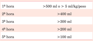Tabla 6: Criterios de sangrado excesivo según hora transcurrida desde la cirugía