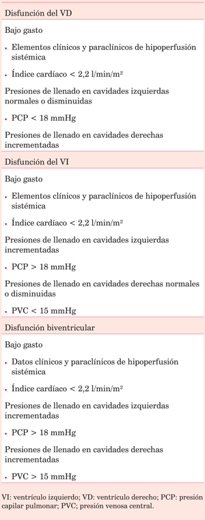 Tabla 2: Etiología del síndrome de bajo gasto cardíaco.