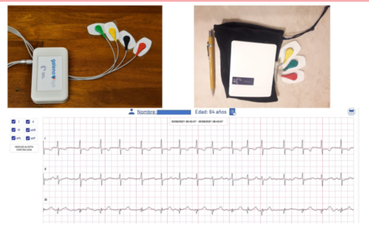 En nuestro país también existen iniciativas en desarrollo con sistemas de monitoreo/telemetría permanente en línea en pleno desarrollo. Se trata de un dispositivo del tamaño de una caja de cigarrillos conectado al paciente con 4 electrodos torácicos, que permite registrar en forma continua y por el período de tiempo que sea necesario, hasta 6 derivaciones del ritmo cardíaco. La información es enviada en forma continua a un servidor en la nube, lo que permite analizar desde cualquier dispositivo, celular o computadora el ECG en tiempo real o el análisis histórico del registro del paciente con jerarquización de alarmas mediante la aplicación de un algoritmo. Es muy práctico para monitorización ambulatoria de largo plazo, para telemetría intrahospitalaria o en internación domiciliaria (figura 6).