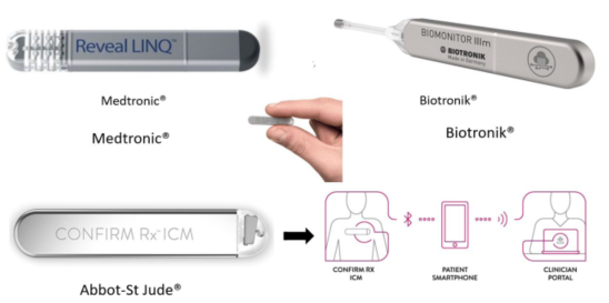 Varias empresas han desarrollado registradores de eventos en asa (loop recorders) implantables en el tejido celular subcutáneo. De forma similar a los registradores de eventos externos, los implantados registran el ECG cuando son activados por el paciente, en este caso aplicando un magneto sobre el dispositivo, o cuando se activa de manera automática su algoritmo de detección. Al inicio fueron indicados para la evaluación de pacientes con síntomas esporádicos probablemente vinculados a arritmias como palpitaciones o síncope de causa no explicada. Los nuevos dispositivos tienen algoritmos específicos para la detección de FA; su batería dura varios años (figura 7). Se han utilizado básicamente para tratar de detectar FA en pacientes que han tenido un ACV. La información disponible es limitada y la incidencia reportada de nueva FA es muy variable debido a diferencias en las poblaciones estudiadas, a la tecnología de los mismos dispositivos y al tiempo de seguimiento. En la actualidad, su indicación para el diagnóstico de FA es limitada, aunque aún no conocemos reportes con los dispositivos más recientes(6,8).