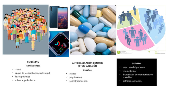 Teniendo en cuenta este contexto, sumado a las cifras epidemiológicas que permiten estimar que la prevalencia de esta arritmia se duplicará en 30 años y considerando los aspectos aún no resueltos: a quién, cómo y cuándo hacer screening, la Unión Europea ha financiado un proyecto denominado AFFECT-EU Project con el objetivo de desarrollar una estrategia de detección utilizando aplicaciones digitales de monitorización del ritmo que permitan disminuir la carga de ACV y otras comorbilidades relacionadas a la FA(20). Los principales objetivos de este ambicioso proyecto incluyen: determinar la magnitud del problema sanitario y la relevancia de la detección de FA, la precisión de los métodos digitales, comparar las estrategias en cuanto a su rendimiento y eficacia, su viabilidad y aceptación , las implicancias económicas, etcétera .