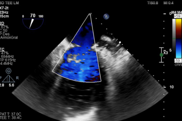 Ecocardiograma transesofágico intraoperatorio Doppler color. Se observa una plastia mitral efectiva, sin reflujo evidente y en ausencia de estenosis residual.