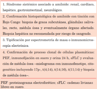 Ante la sospecha de amiloidosis, desde el punto de vista hematológico, los pasos para la evaluación son: