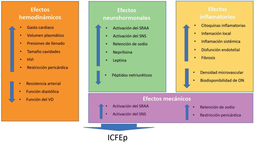 El rol de la inflamación en las alteraciones que se producen en este período explica en parte la asociación de ICFEp con la obesidad, DM y edad.