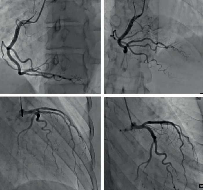 Se realizó cineangiocoronariografía (CACG) que mostró arterias coronarias epicárdicas sin lesiones angiográficamente significativas (figura 3).