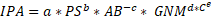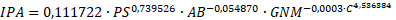 Donde el incremento medio anual del periodo expresado en cm/año (IMA) es la variable dependiente y las variables independientes son la posición sociológica de los individuos (PS), el área basal correspondiente a cada individuo (AB), área basal de las especies no maderables (GNM) y un índice clasificador de las especies (C) (Tabla 5).