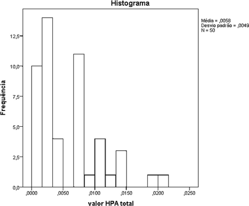 A Figura 1 mostra o histograma da frequência das concentrações dos HPA e suas concentrações.
