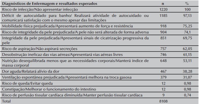 Estudos(10-16) demonstram expansão no desenvolvimento e emprego dos DEs e dos sistemas de classificação, evidenciando a necessidade da articulação teórico-prática e o desenvolvimento de instrumentos de assistência de enfermagem que direcionem a coleta de dados, composto pelos diagnósticos de enfermagem prevalentes em pacientes em UTIs, seus respectivos resultados e intervenções, que nortearão a assistência de enfermagem(10,12).
