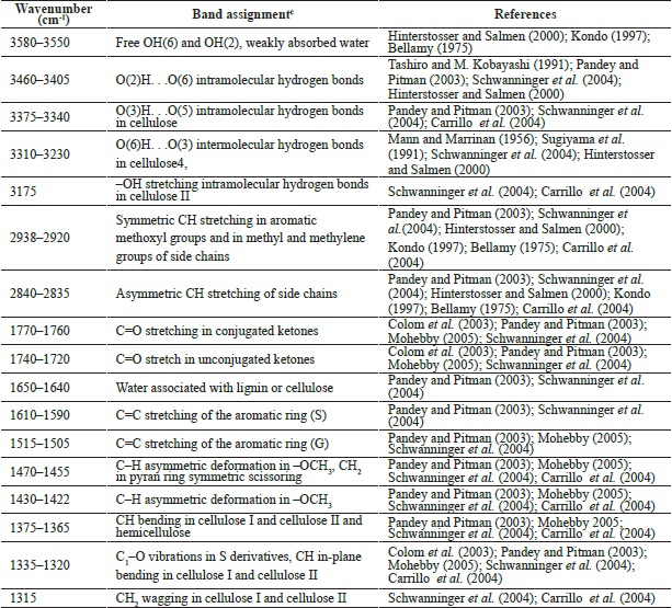 Kondo, T. 1997. The assignment of IR absorption bands due to free hydroxyl groups in cellulose. Cellulose 4: 281-292.