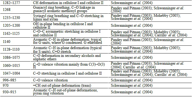 Pandey, K.K; Pitman, A.J. 2003. FTIR studies of the changes in wood following decay by brown-rot and white-rot fungi. International biodeterioration & biodegradation 52: 151-160.