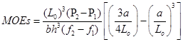 [4]Where; MOEs is the static modulus of elasticity (N/mm2), L0 is the effective span distance (mm), P2-P1 is the load difference between 10% and 40% of maximum load (N), f2-f1 is the deflection difference at 10% and 40% of maximum load (mm), b is the width (mm), h is the height (mm) and a is the distance between loading point and nearest support point (6h) (mm).